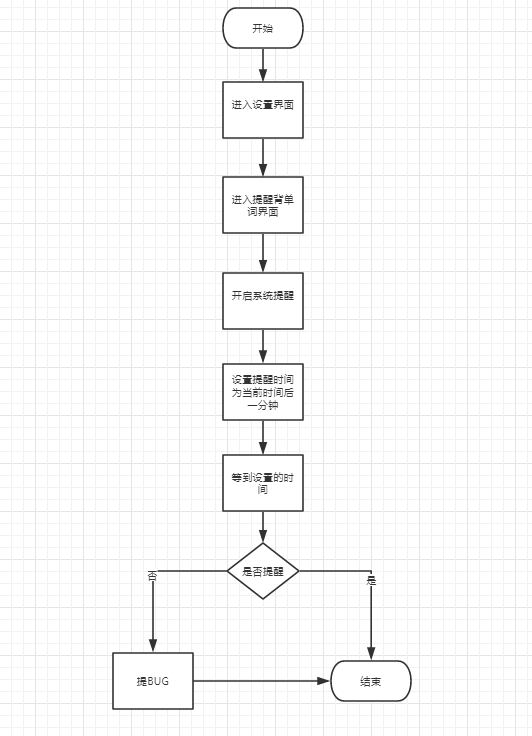 例如对设置系统提醒功能的测试用例设计的业务流程图如下: