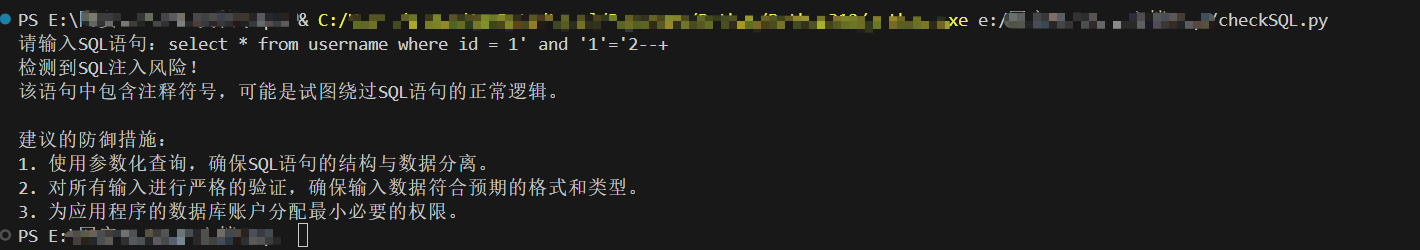print("未检测到SQL注入风险。")