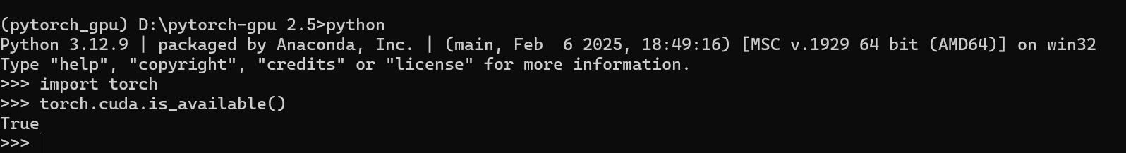 4.输入python;输入import torch;输入torch.cuda.is_available(),检查是否安装成功,如图: