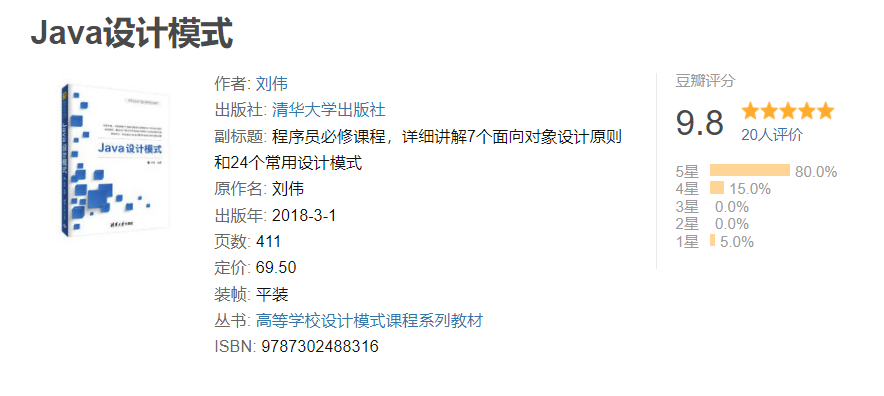 在读完这本书,会对设计原则、设计模式的概念更加清楚。在此之前的一些课设项目编码中,可能也会专门多使用专门接口即接口隔离原则,但并不对所有设计原则有一个比较清晰的了解;本书结合大量项目实例对每一个设计模式进行全面、细致的讲解,可以让我对每个原则有一个更明确的认知。全书结构合理、条理清晰、内容丰富,非常适合我去细读和慢慢理解下去的。>