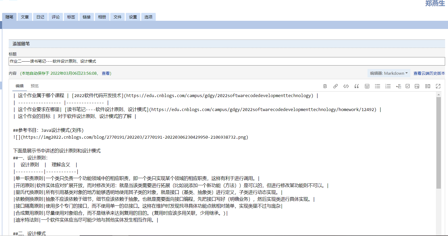 | 这个作业要求在哪里 | 读书笔记----软件设计原则、设计模式 |