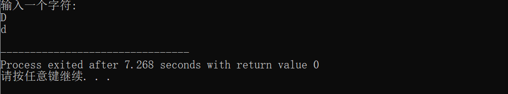 根据输入字符,判断是否为小写字母,若为大写字母,则转化为小写: