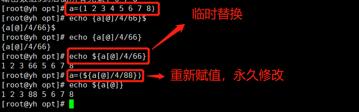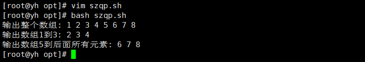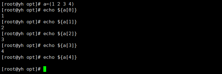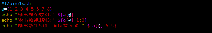 echo ${数组名[索引值]} //输出数组索引值对应的元素,索引值从0开始