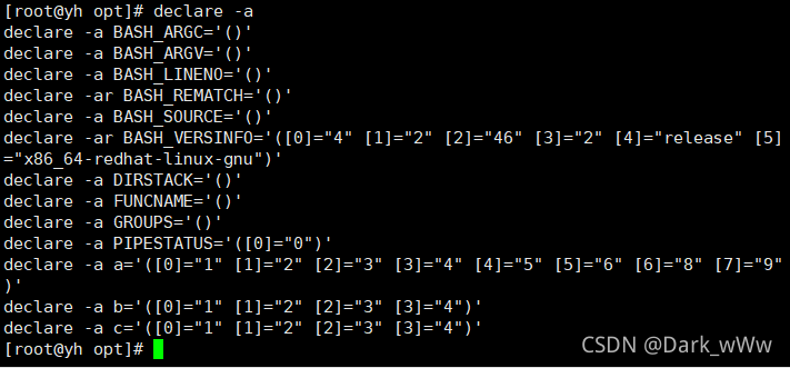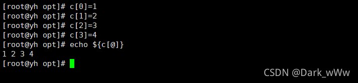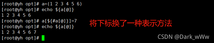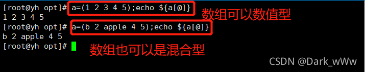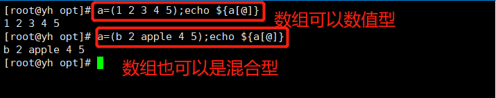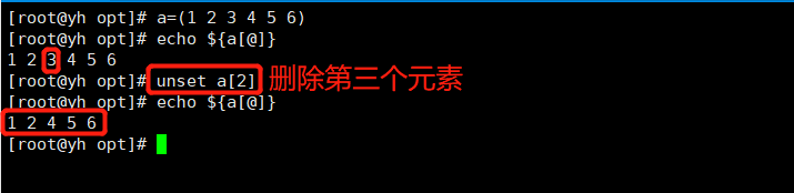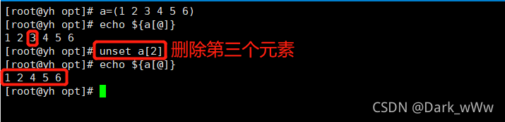 法二: 数组名=([0]=value1 [1]=value2 [2]=value3 ...)