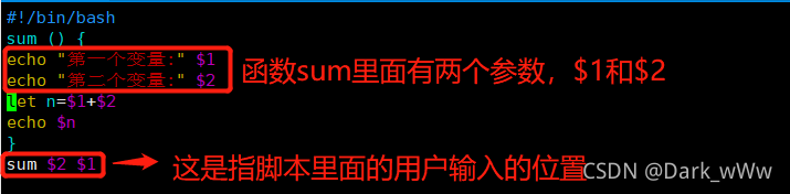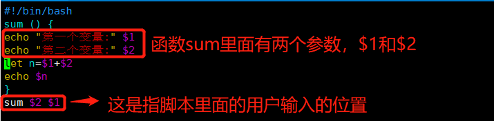 在Shell中,调用函数时可以向其传递参数。在函数体内部,通过 $n 的形式来获取参数的值,例如,$1表示第一个参数,$2表示第二个参数…即使用位置参数来实现参数传递