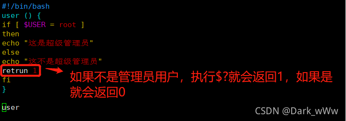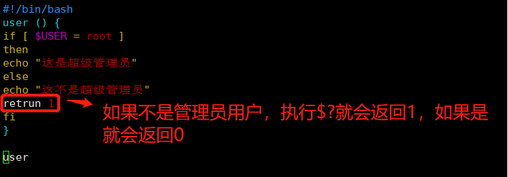 return表示退出函数并返回一个退出值,脚本中可以用$?变量表示该值