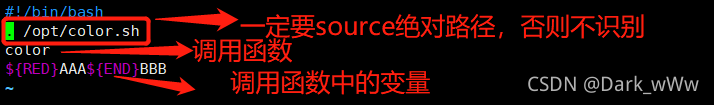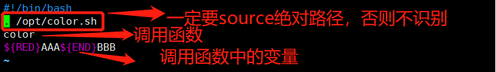 在外部调用命令需要先source一下,然后再调用函数,再调用函数中的变量