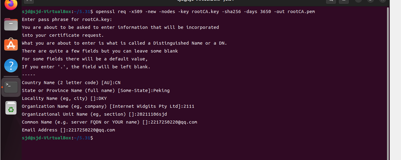 根据 openssl.cnf 配置文件中指定的路径,执行以下命令:
