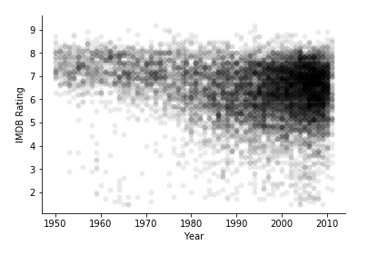 时间更近的电影评分较低,这是真实的情况还是选择偏差?