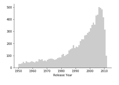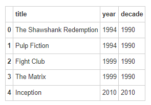 接下来,我们来探索一下分组的特征,先将电影按年代划分