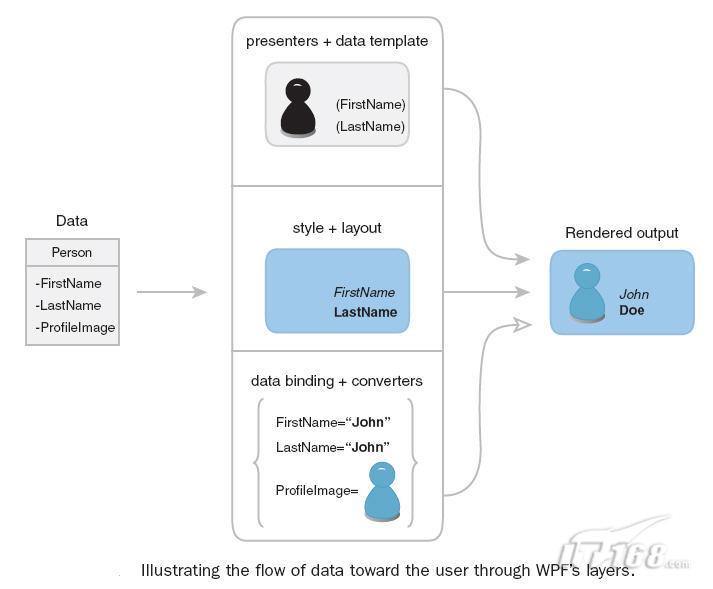 但是如果是object类型,那WPF如何知道具体该如何显示这些数据呢?这就要通过Templates、Presenters、Binding and Converters、Layout和Styles了。