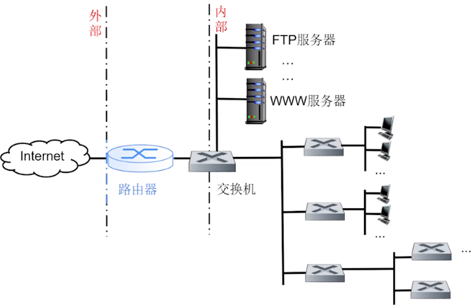 从物理上把内部网络和 Internets隔开,必须通过两层屏障