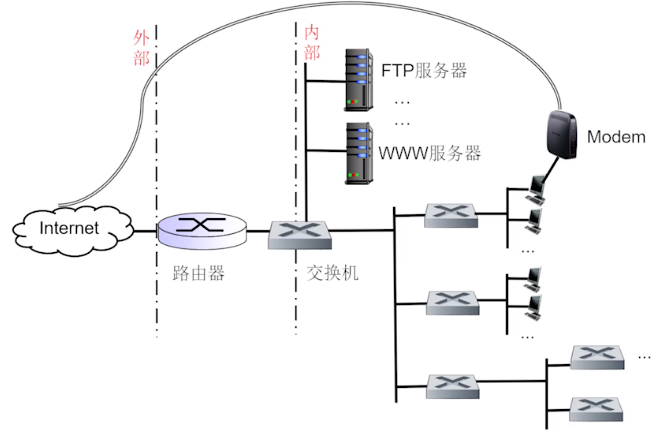 红圈内就是DMz 这个缓冲地带适合放信息服务器(既要提供内网访问 也要能向外网发布信息的服务器)