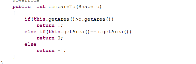 后面根据提示在Circle类和Rectangle类中加上了compareTo的方法。在一开始编译器是直接给return 0的。然后此时编译不出问题了,但是依旧没有排序。所以我想了半天老师怎么说的,才慢慢改出这份代码。