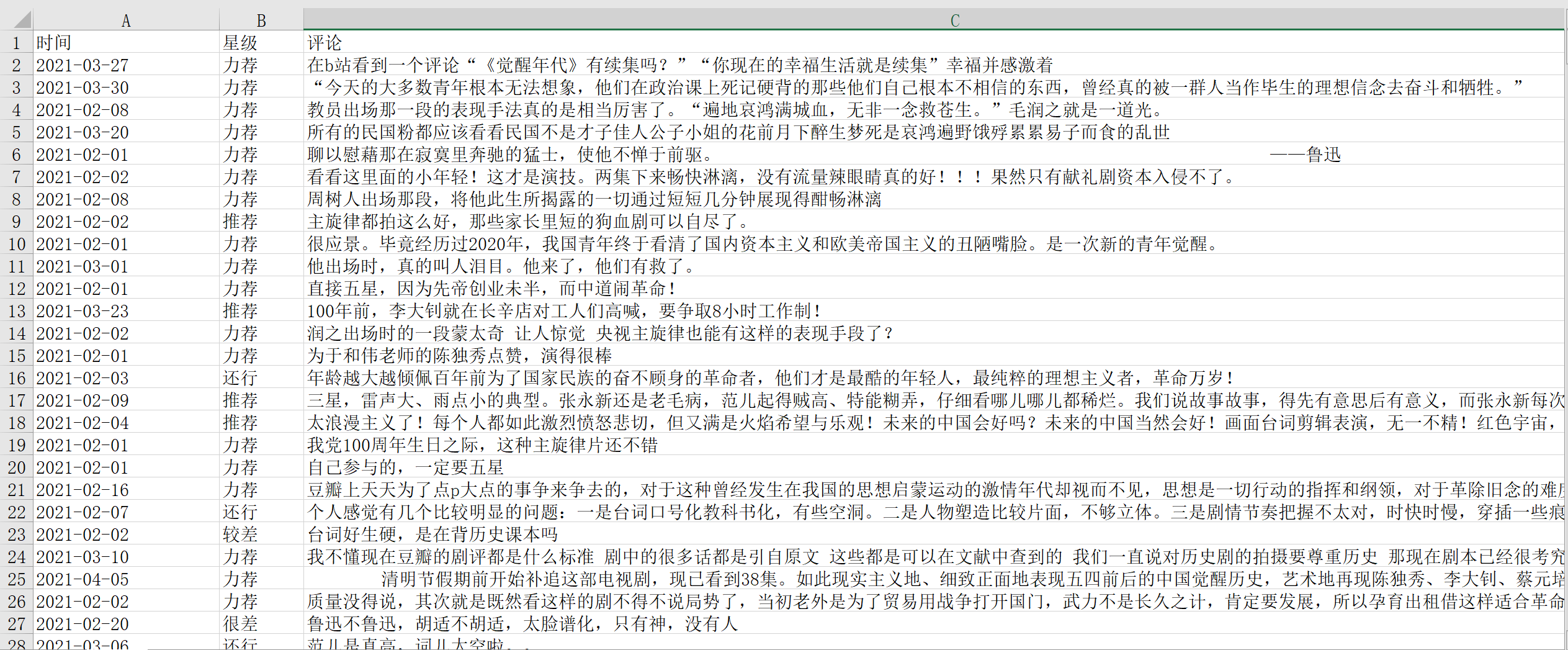 col = ws.column_dimensions['C'] # 将评论列拓宽
