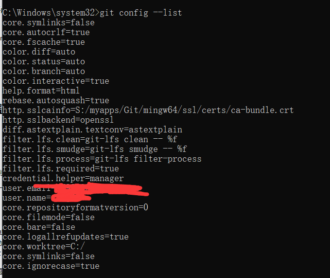 注意:git config --global 参数,有了这个参数表示你这台机器上所有的git仓库都会使用这个配置,当然你也可以对某个仓库指定不同的用户名和邮箱