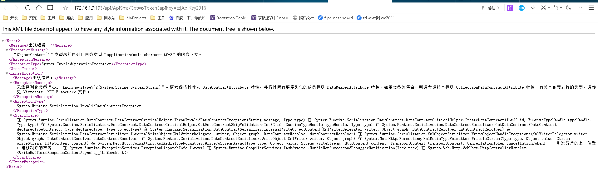 使用 WebAPI ,Controller 返回 object 类型,在Google浏览器中会报错:“ObjectContent`1”类型未能序列化内容类型“application/xml; charset=utf-8”的响应正文
