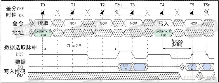 在写入时,以 DQS 的高/低电平期中部为数据周期分割点,而不是上/下沿,但数据的接收触发仍为 DQS 的上/下沿。