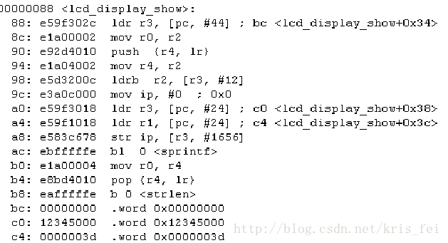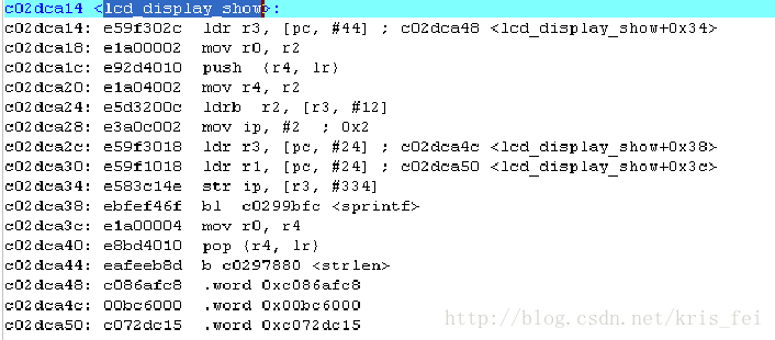其中lr为0xc0292754, 表示lcd_display_show执行完后的返回地址,它是调用函数中的地址。下面使用lr值重复本步骤的回溯过程。