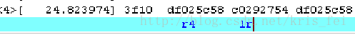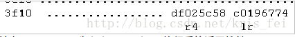 push {r4, lr} 这几个寄存器保存在stack中, 所以会sp中的信息会这样: