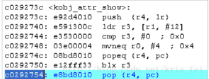 其中0xc0196774为kobj_attr_show执行后的返回地址。