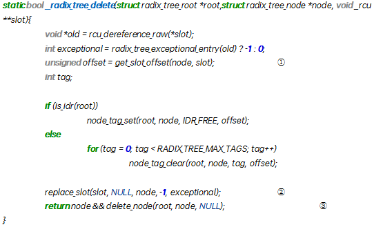 ③释放该节点内存,接下来对删除节点的父节点进行操作(因为它父节点slots如果没有挂有其他节点也需要删除)。radix_tree_shrink功能是缩减树的高度, 去除一些没有使用的节点。