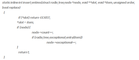 经过上面对radix树的结构讲解,看代码就比较容易了。下面说说radix树的基本操作插入、查找和删除。