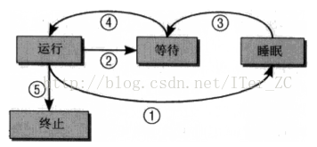 3表示睡眠的进程等待的事件发生了,它进入到等待状态,不能直接进入到执行状态