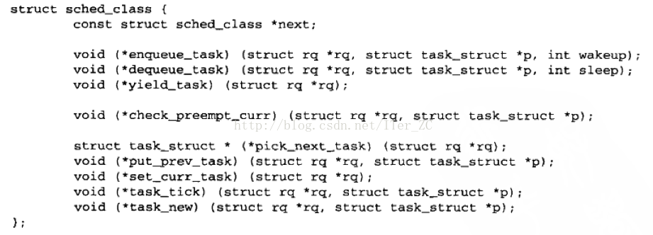 调度器类必须提供sched_class的实例,指定了调度器类能够进行的操作