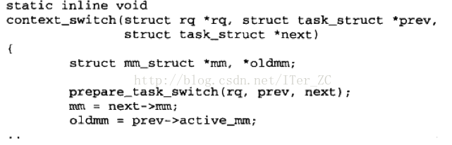 3. switch_mm函数更换由task_struct的mm描写叙述的用户空间虚拟地址上下文,比方载入的页表,刷出TLB。主要是存放在快速缓存和TLB中的供CPU使用的数据。而很多其它的数据保存在内存中,是不须要切换的的,在须要时从内存载入