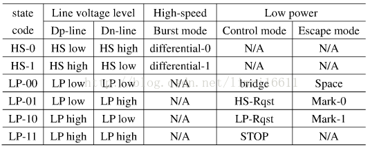 信号两种工作状态,高速模式状态(LP)和低速模式状态(HS)。
