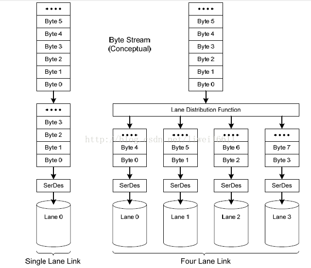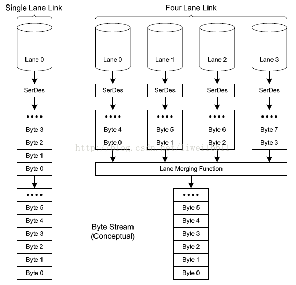依据设计所设定最多为4个数据通道,该层在发送端将需要发送的数据按照通道次序分成N组输送到相应的数据通道,使其经数据通道同时发送至从属端。在接收端,该层需要做的是将接收到的N组数据组合在一起恢复成原始的数据序列。