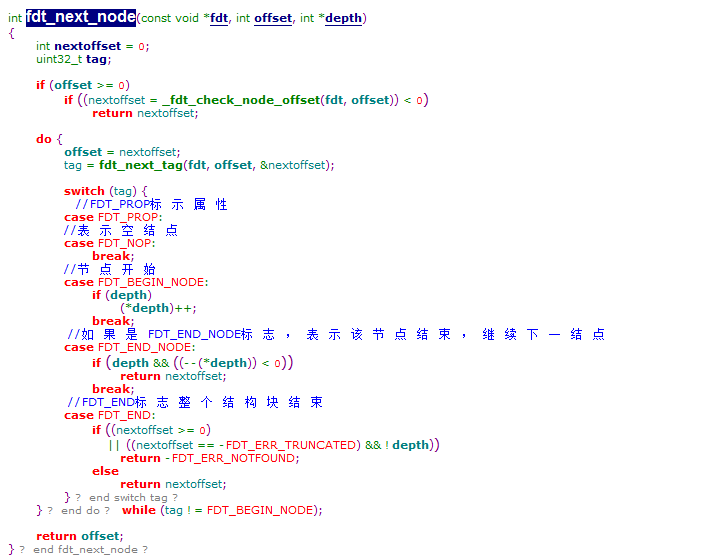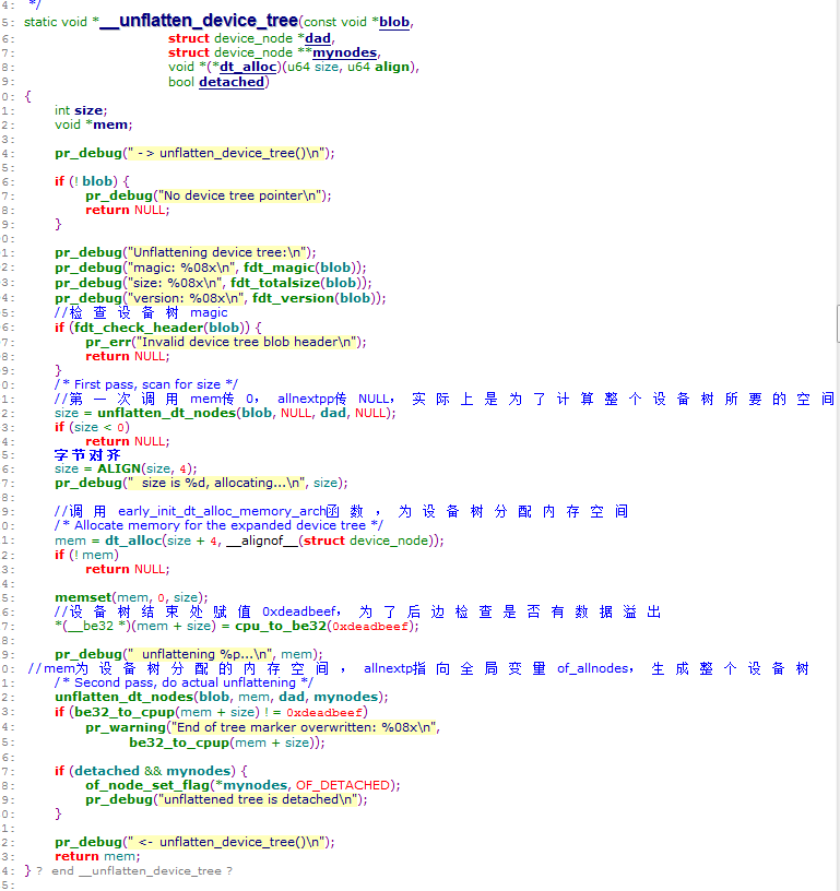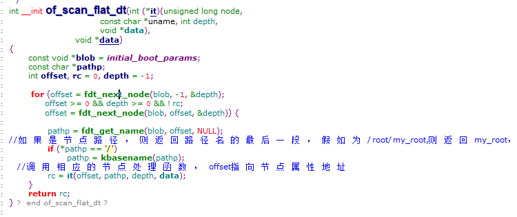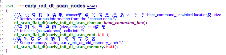 分析Linux内核的源码,可以看到其对扁平设备树的解析流程如下