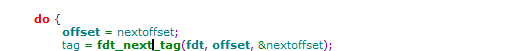 在结构块中,节点起始标志为32位常值宏OF_DT_BEGIN_NODE,节点结束标志为宏OF_DT_END_NODE