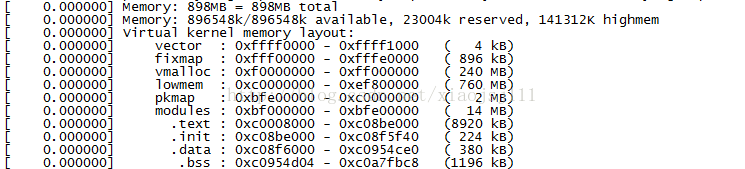 最后附一个我们实际使用中的contexA9双核,ram为1GB大小的系统的linux内存分布情况图: