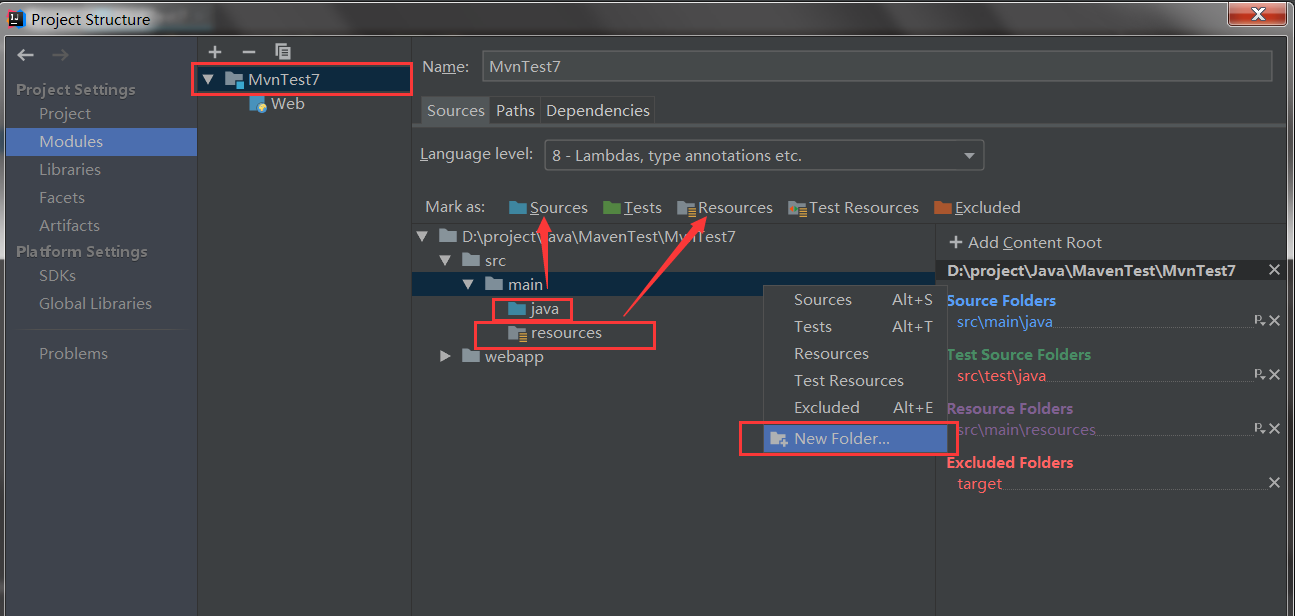 我的新建两个文件夹 java 和resources,自动转换成 源文件目录和资源文件夹目录(就是图标和普通文件夹不一样,譬如main文件夹)