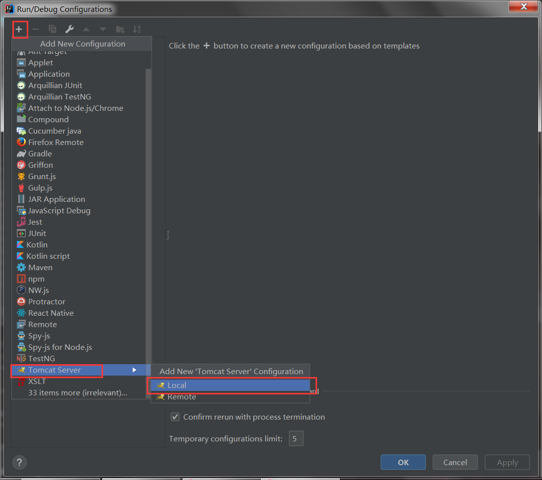 点击 减号,删除掉默认的配置,点击加号,新增配置