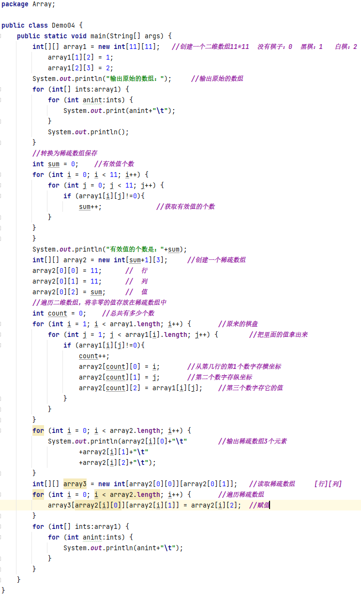 当一个数组的大部分元素为0,或者为同一值的数组时,可以用稀疏数组来保存该数组