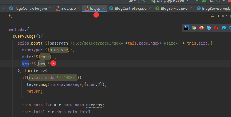 有人看到这里可能会问,上面的日记分类不是用vue来做了,怎么这边又要用JSTL了?