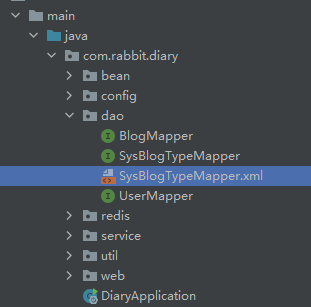 xml配置的路径是 classpath:com/rabbit/diary/dao/*.xml