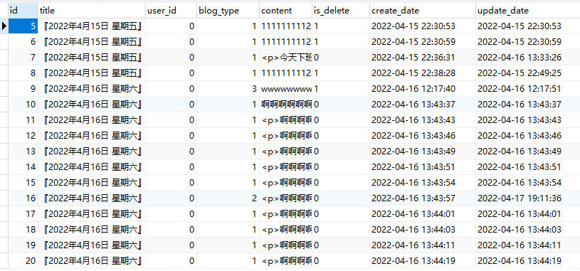 现在还是假数据,我们来看看日记表。