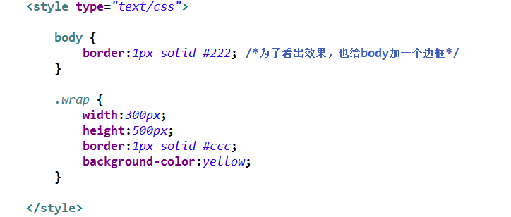 接着,在head元素上挂载一个style元素,专门用来设置样式表。接着,给wrap设置一点点样式。