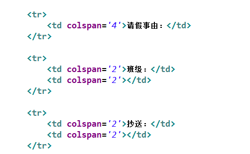 这表示给第一行第一列设置列合并为2,那么每一行就有了4列。一共有几列是以第一行为准的。这样一来,下面这几个地方也要跟着改: