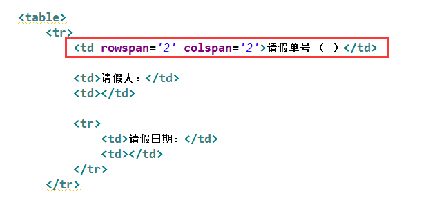 可惜效果不对,这一行被挤下来了,原因很简单,因为第一列没有占据两行,所以如果我们硬是在后面添加一行,就会被挤下来。解决方法,是在第一列的td元素上,绑定一个rowspan属性,设置为2:
