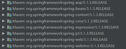 1 <!--springMvc依赖的jar包--> 2 <dependency> 3 <groupId>org.springframework</groupId> 4 <artifactId>spring-webmvc</artifactId> 5 <version>5.1.3.RELEASE</version> 6 </dependency>