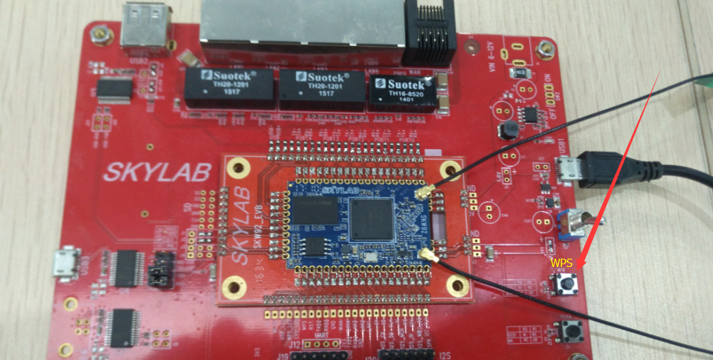 4、按下EVB开发板上的WPS键——WPS脚拉低,按下后放开:
