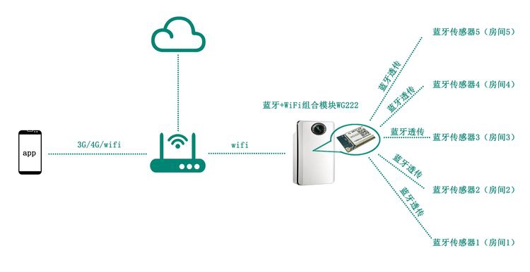 将蓝牙+WiFi组合模块WG222接入智能空气净化器方案的主控制板电路中,内嵌ble蓝牙模块的空气传感器负责实时自动采集各房间的温度、湿度和空气质量度,通过ble蓝牙模块将数据透传给WG222的ble蓝牙部分,透传过来的空气质量数据再通过WG222内部的串口传给WiFi部分,WiFi部分负责上传空气质量数据到云端,手机app就可以通过3G/4G/wifi远程连接沟通云端,按自己的需求远程操控净化器的加强或减弱等